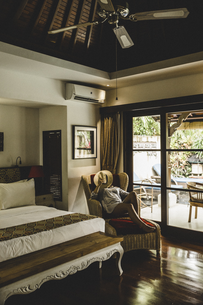 Après une journée plutôt périlleuse, qui aura commencé par notre montée sur le Mont Batur sous la pluie et sans lever de soleil, nous arrivons enfin dans notre deuxième hôtel, le Bisma Eight, situé à Ubud, mais plus proche du centre cette fois-ci.